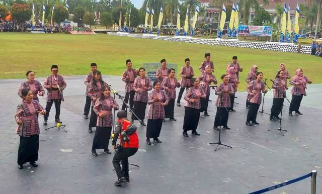 Lingkaranberita.com, SANGATTA – Tim Paduan Suara Cap Jempol tampil memukau di acara peringatan semarak Hari Ulang Tahun (HUT) ke-24 Kabupaten Kutai Timur (Kutim), Kamis (12/9/2023) pagi. Tim paduan suara ini merupakan binaan sanggar kegiatan belajar dari Dinas Pendidikan dan Kebudayaan (Disdikbud) Kutim bekerja sama dengan Dwi Studio Musik dan Henz Studio Sangatta.