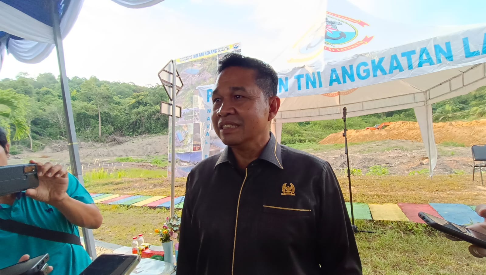 Ketua DPRD Kutim Joni, yang turut meletakan batu pertama menyambut baik inisiatif Lanal Sangatta dalam membangun kolam renang ini berstandar internasional pertama di Kutim.