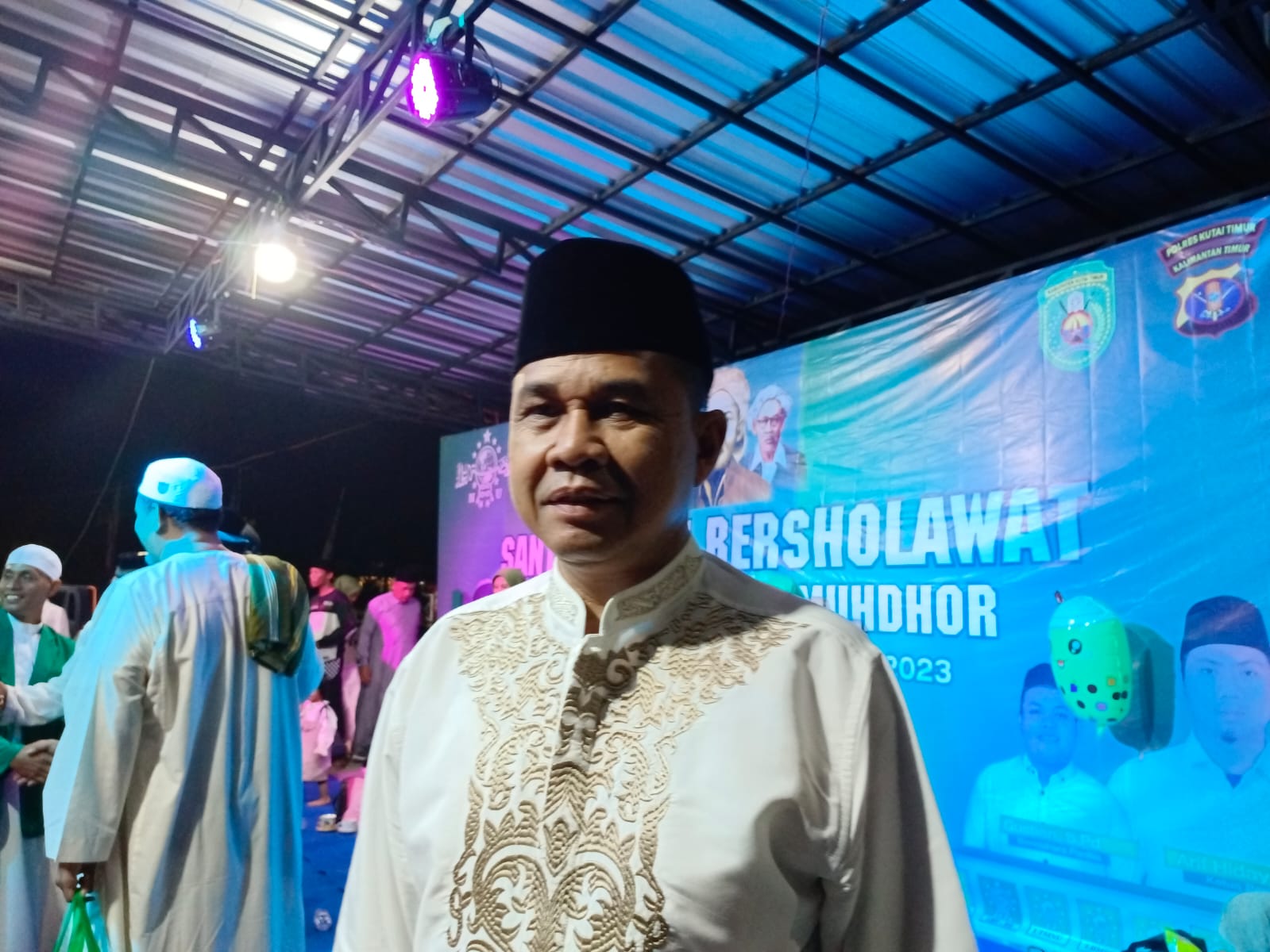 Lingkaranberita.com, Sangatta – Ketua Dewan Perwakilan Rakyat Daerah (DPRD) Kutai Timur (Kutim) Joni, menghadiri acara santri bersholawat, di Polder Ilham Maulana, Minggu (29/10/2023) malam.
