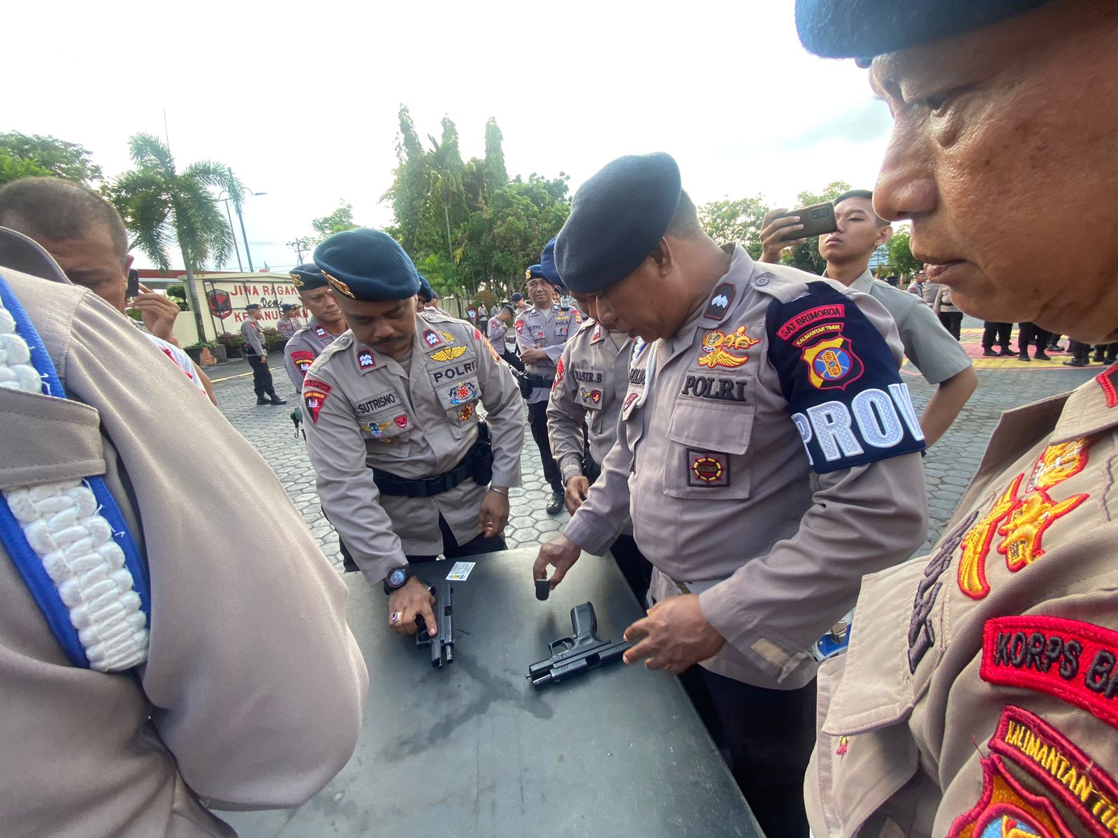 “Selain mengecek kebersihan dan kondisi senpi, kita juga lakukan pengecekan kelengkapan administrasi seperti masa berlakunya Surat Ijin Pemegang Senpi milik personel.” Kata Kompol Iwan Pamuji.