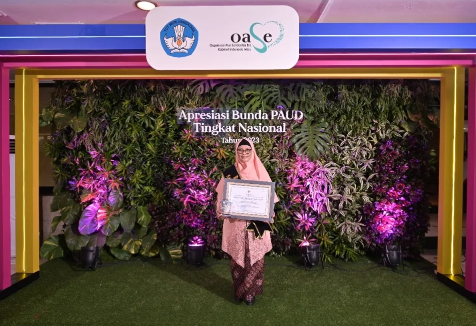 Penghargaan tersebut diberikan sebagai bentuk apresiasi untuk kinerja dan dedikasi tinggi dalam mendukung “Gerakan Transisi PAUD ke SD yang Menyenangkan.” Penyerahan sertifikat dilangsungkan di Mercure Convention Center, Jakarta, pada Rabu (8/11/2023), dan diserahkan langsung oleh Bunda PAUD Nasional Iriana Joko Widodo.