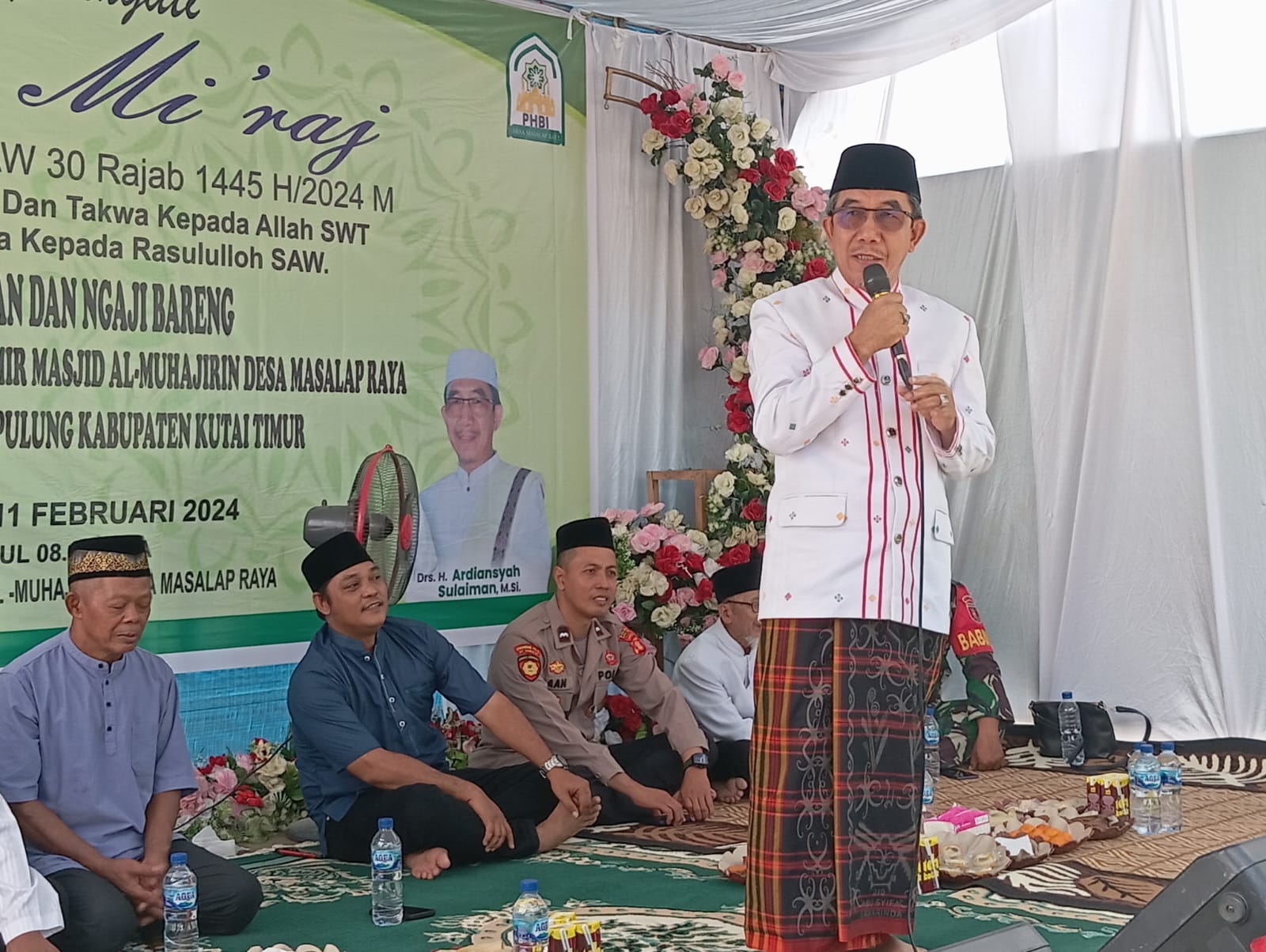 Lingkaranberita.com, RANTAU PULUNG – Suasana kehangatan spiritual menyelimuti Desa Masalap Raya saat Bupati Kutai Timur (Kutim), Ardiansyah Sulaiman, mengisi tausiah dalam peringatan Isra Mikraj Nabi Muhammad SAW di Masjid Al-Muhahirin.