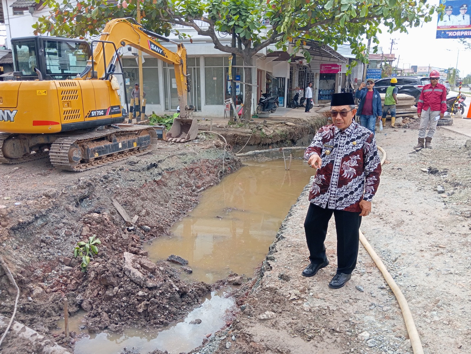 “Saat ini pemerintah masih melakukan proyek pembenahan drainase, masyarakat harus bisa memahami. Jadi ada pengalihan jalan sementara, saya mewakili pemerintah mohon maaf,” ujarnya.