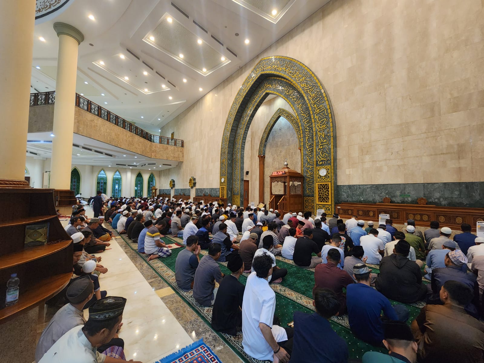 Mengenakan gamis putih, beliau menyampaikan pesan keagamaan yang menginspirasi ribuan jemaah yang memadati masjid tersebut.