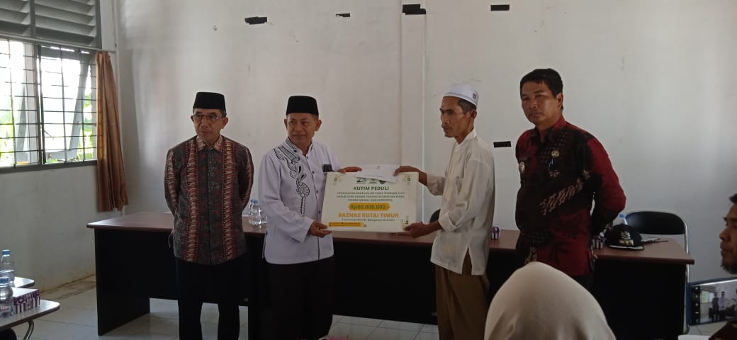 Penyerahan bantuan secara simbolis diberikan oleh Ketua BAZNAS Kutim Masnif Sofwan kepada perwakilan Ketua Korwil UPT Pendidikan Telen Agus.