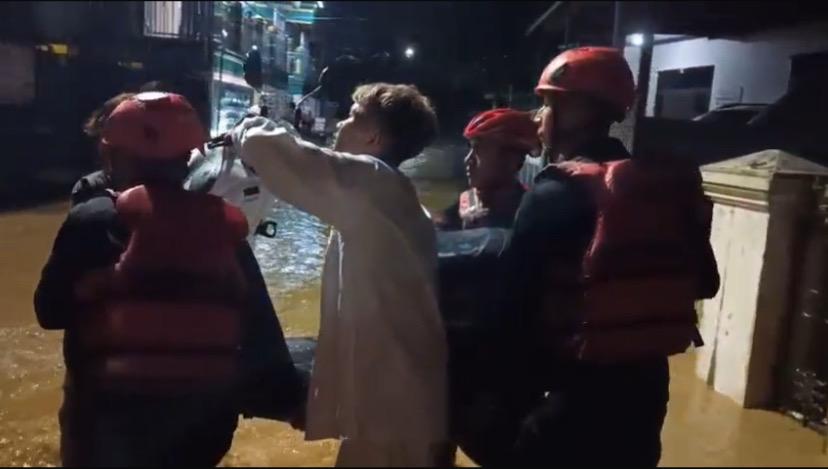 Dalam video maupun foto yang dibagi, terlihat situasi warga masyarakat terjebak di tengah genangan air, sementara beberapa petugas mengarahkan dan membantu untuk di evakuasi.