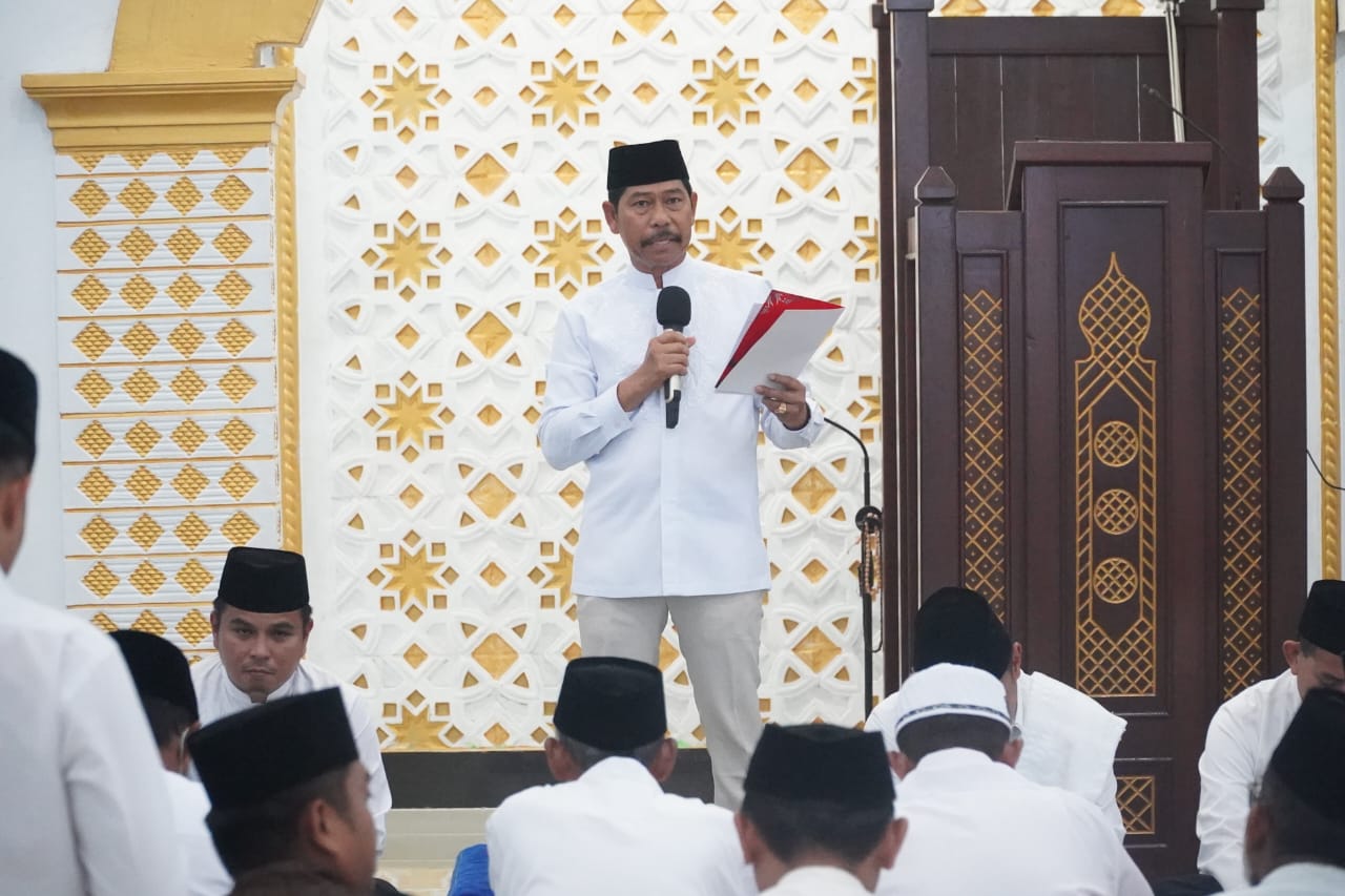 “Mari kita tingkatkan ibadah shalat, perbanyak membaca Al-Qur’an, menunaikan zakat, serta mempererat ukhuwah Islamiyah di antara kita,” ajaknya.