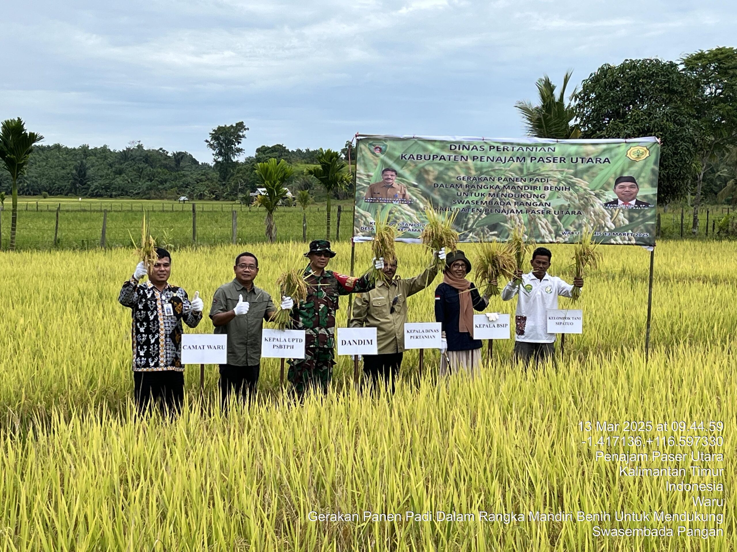 Lingkaranbebrita.com, PENAJAM – Dalam rangka mendukung swasembada pangan di Kabupaten Penajam Paser Utara (PPU) Dinas Pertanian Kabupaten PPU bekerjasama dengan Badan standarisasi instrumen pertanian (BSIP) Kementerian Pertanian, Provinsi Kalimantan Timur (Kaltim) mengelar gerakan panen padi yang melibatkan Kelompok Tani (Poktan) Sipatuo, Desa Sesulu, Kecamatan Waru, Kabupaten PPU, Kamis, (13/3/2025).
