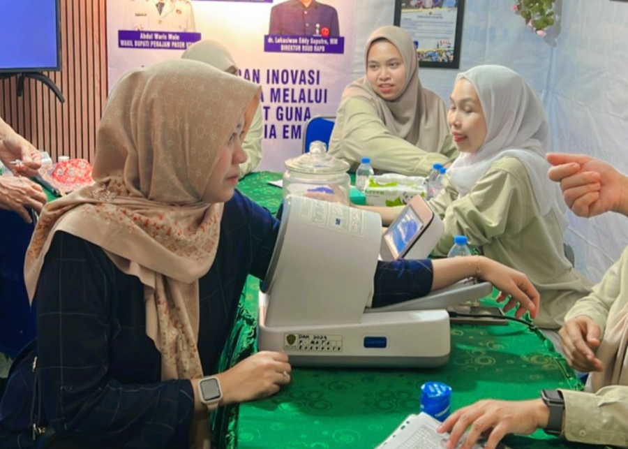 Stand RSUD Putri Aji Batung ramai dikunjungi warga yang penasaran menjajal langsung alat tersebut. Selain mencoba, pengunjung juga mendapatkan edukasi mengenai pentingnya pemantauan tekanan darah secara berkala.