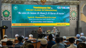 Lingkaranberita.com, Malang, — Universitas Islam Malang (Unisma) kembali mempertegas komitmennya dalam membangun wawasan global melalui kehadiran ulama terkemuka dalam gelaran Kuliah Ulama Internasional. Kali ini, Unisma menghadirkan Rektor Universitas Imam Syafi’i Mukalla, Yaman, Syekh Dr. Muhammad bin Ali Ba’atiyah yang menyampaikan materi bertajuk “Ma’alim As-Salam Al-Alami fil Quran Al-Karim”—Landasan Perdamaian Dunia dalam Al-Qur’an.
