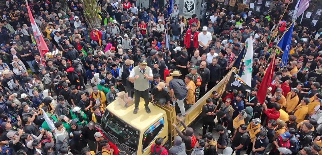Aksi yang diikuti oleh mahasiswa, pengemudi ojek online, organisasi masyarakat, hingga warga sipil ini berlangsung damai namun penuh semangat. Dari atas mobil komando, orator silih berganti menyuarakan tuntutan yang mencakup isu hukum, pendidikan, hingga keadilan sosial.