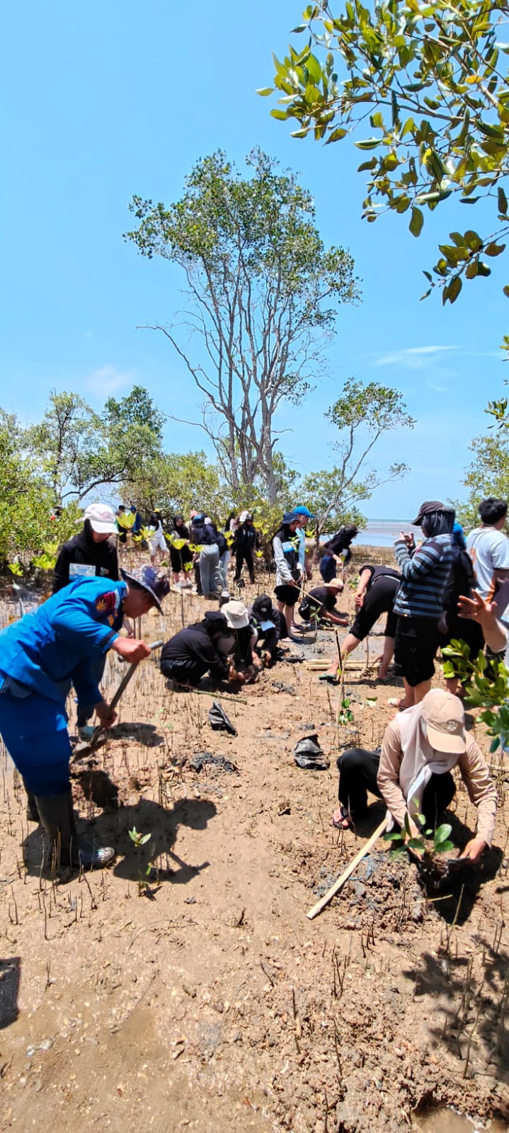 Sebagai bentuk aksi nyata, para mahasiswa menanam sekitar 200 bibit mangrove di sepanjang pesisir. Jenis yang ditanam meliputi Avicenia, Rhizophora mucronata, dan Rhizophora apiculata yang dikenal efektif dalam memperkuat garis pantai.