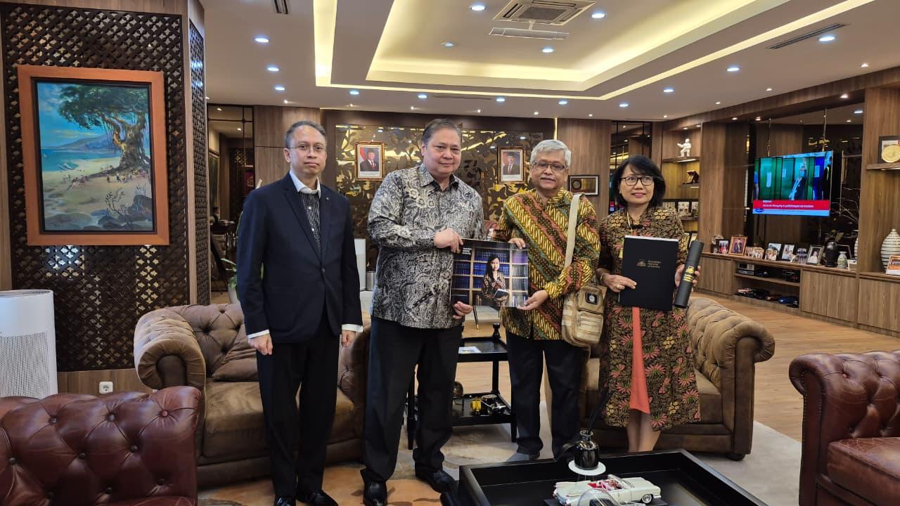 Momen Menteri Koordinator Bidang Perekonomian Airlangga Hartarto menyerahkan ijazah kepada keluarga ASN C Novika. (Ist)